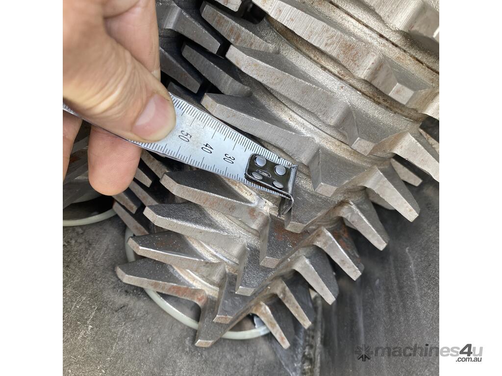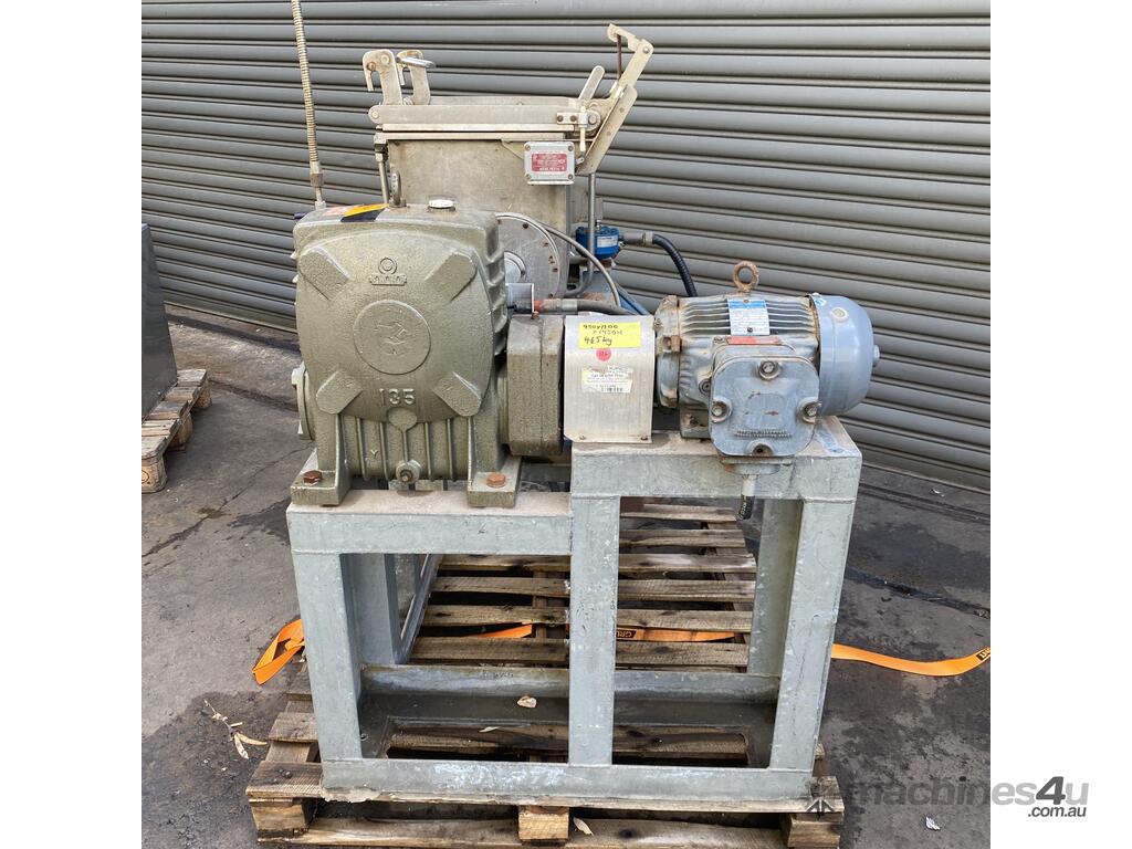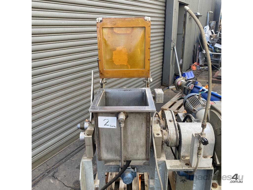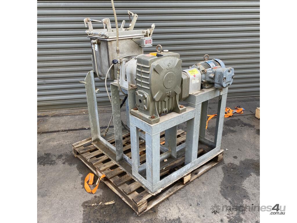 we suspect from shape that it may originally been intended to have been a sigma blade or z arm mixer but the rotors seem to have been replaced with the grinding lump braking rotors.
