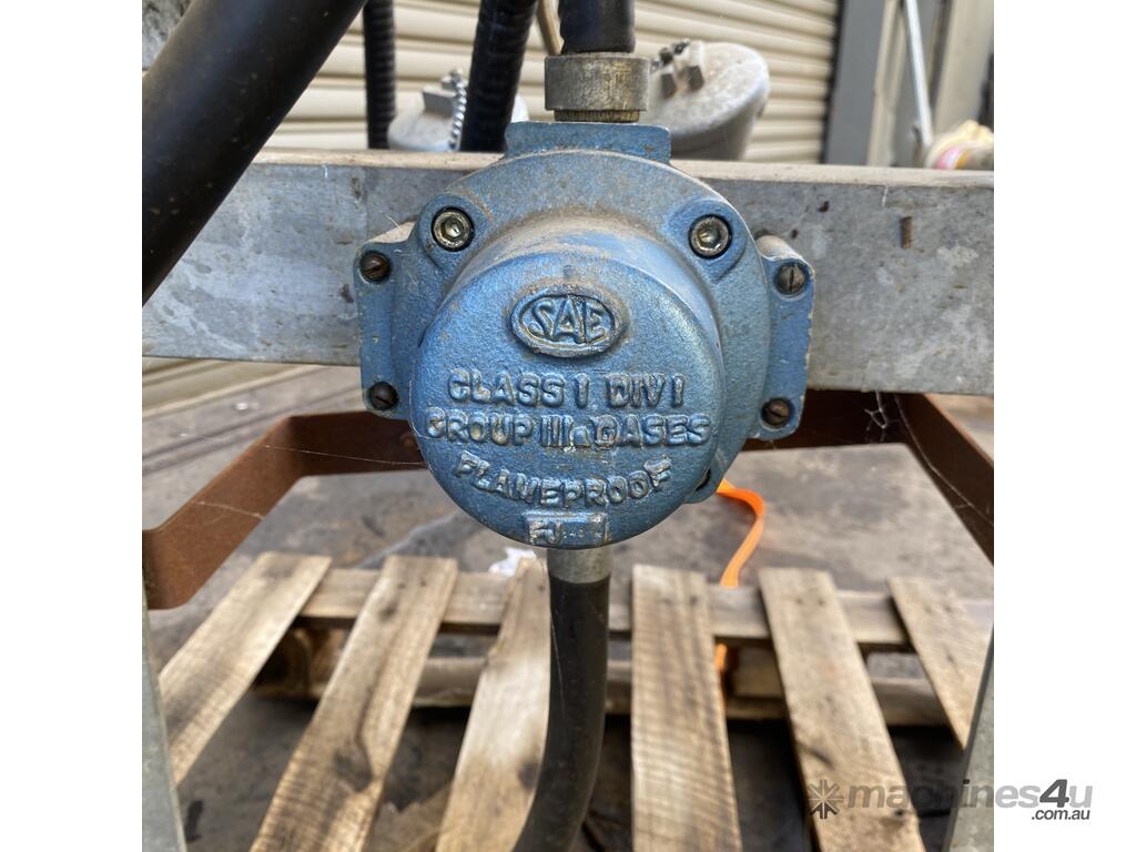 This has no controls or switch gear for the motor, but it includes some limit switches amd senors which are flameproof ex rated. The unit is equiped with a hydraulic ram actuated tipping mechinisim but this would require an external hydraulic pack and valved to operate. The unit is ex defence and is fitted with a flamefroof Ex d motor.