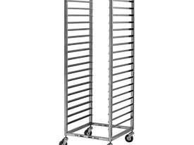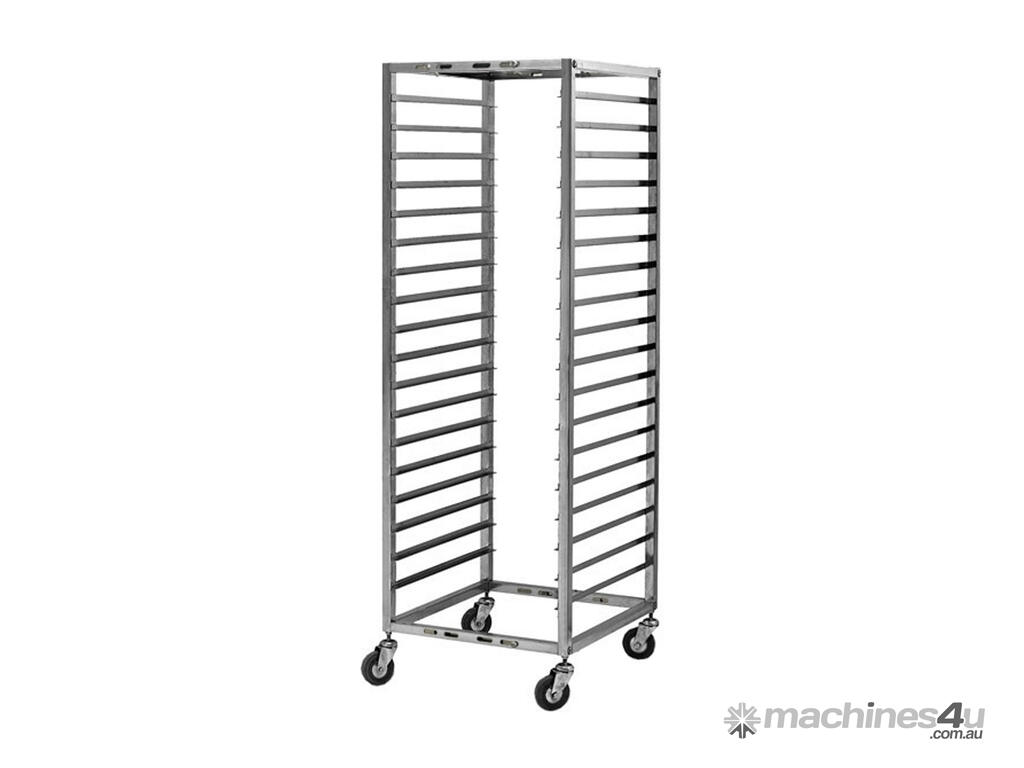 VERY HEAVY DUTY ALL STAINLESS STEEL GASTRONORM RACK All joints are fully welded 18 Shelves, with adjustable width from 410mm to 600mm wide 740mm deep, 1845mm total height Suitable for bakery ,Gastronorm and Euronorm trays 150 kg load capacity 25 mm² Stainless Steel tube frame Fully Welded 1.2mm 304 grade stainless steel shelf supports 50mm wide with rear stays All castors (two with brake) Comes with assembly instructions, manual & tools Supplied flat-packed for ease of transport 2 Years Parts only Warranty Depth: 740 mm | Width: 520 mm | Height: 1810 mm | Price: $659 | Manufacturer: Modular Systems | Warranty: 2 Years Parts Only