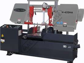 ACTUAL POWER H-420HA-NC NC Double Column Metal Cutting Band Saw - Automatic Hitch Feed Includes Inverter Variable Blade Speed Control, Auto Kerf Compensation, Auto Trim Cut, LCD Touch Screen, Hydraulic Vice Clamping & Hydraulic Downfeed Control 420 x 420mm (W x H) Rectangle Capacity
