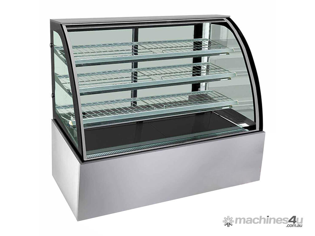 1200 mm wide Heated Curved Glass Stainless Steel Food Display 4 Display Levels Black Trim & Shelving Fan-forced thermal air-flow & humidity • Gross Volume: 430L • Temperature Range: 30 to 85°C • Stainless Steel • Easy to clean • Lighting over each level • Sliding rear doors • Digital temp. control & read-out • 3 levels of wired shelving plus floor * This is a hot food holding cabinet only, it is not designed to heat product . 2 Years Parts and Labour + 2 Years Parts only Warranty with Product Registration Depth: 740 mm | Width: 1200 mm | Height: 1350 mm | Power: 240V; 1290W | Net Weight: 198 | Price: $4360 | Manufacturer: Bonvue | Warranty: 2 Years Parts and Labour + 2 Years Parts Only for Products Registered within 14 Days of Invoice