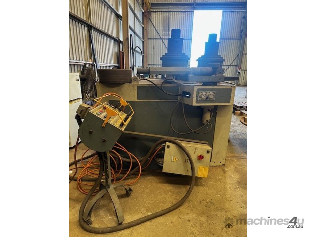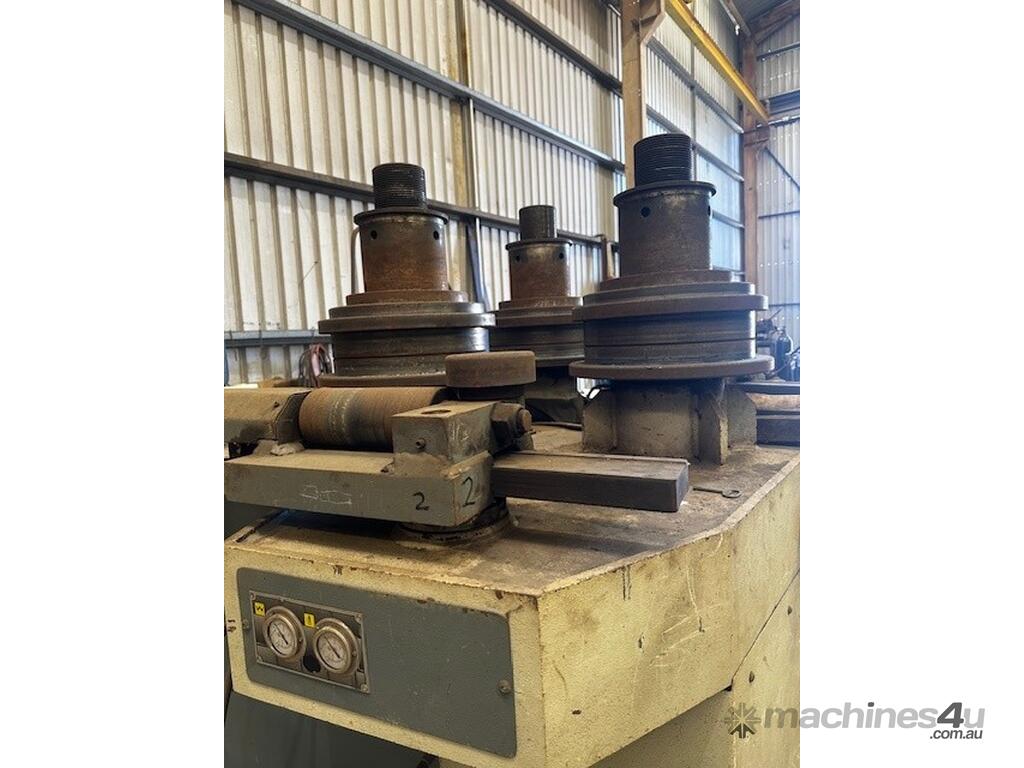 We use heavy steel fabricated frames machined on CNC machining centers to ensure extreme accuracy. Two forming rolls for reduction of flat ends.