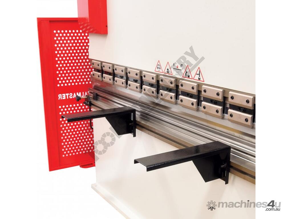 Rear sliding safety gate with micro switch combined with access panels placed at each end of machine allows the operator to clearly view tooling and work piece during the bending operation, Metalmaster specially design gates to suit Australian safety requirements
