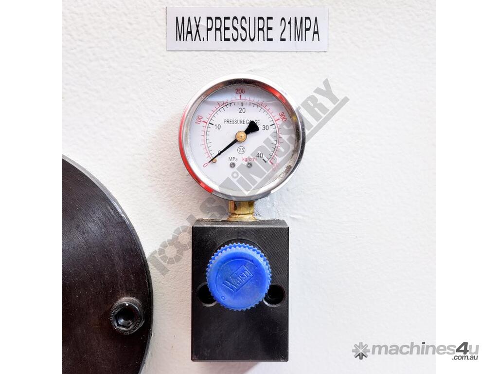 Adjustable bending pressure control allows the operator to quickly and accurately set the pressure required for different material. This user friendly system incorporates hydraulic overload protection.