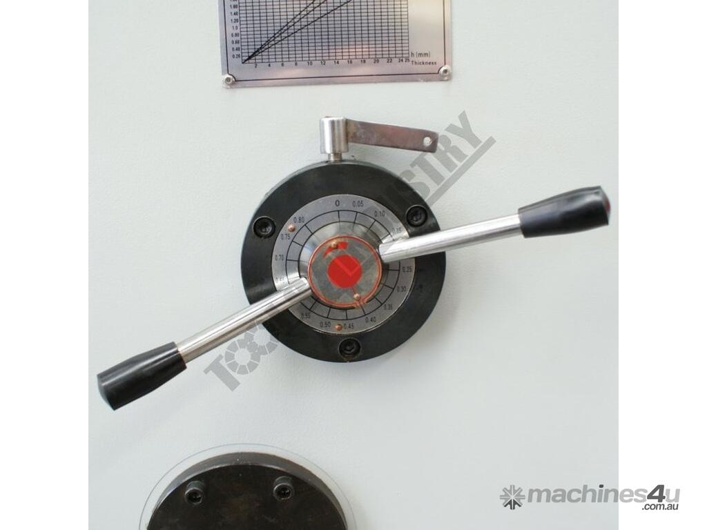 Blade gap adjusting dial mounted on side of machine for convenient and accurate alteration for all your material thickness from 0.5 - 6mm. This dial is designed so that a straightforward rotation clock or anti clockwise to achieve desired plate thickness. Measurement on dial indicates and refers to actual blade gap distance in millimetres