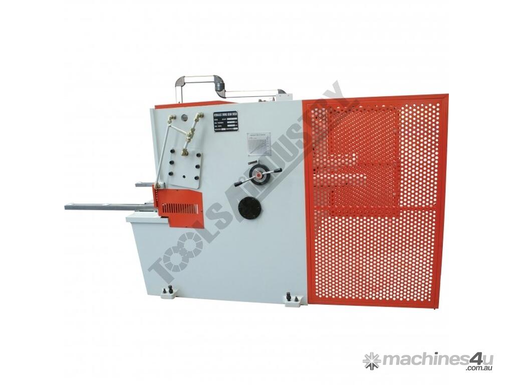 Shadow line lighting has been incorporated into the machine frame providing a clear cutting line on the work piece and enabling scribed or marked material to be cut with simplicity as required.
