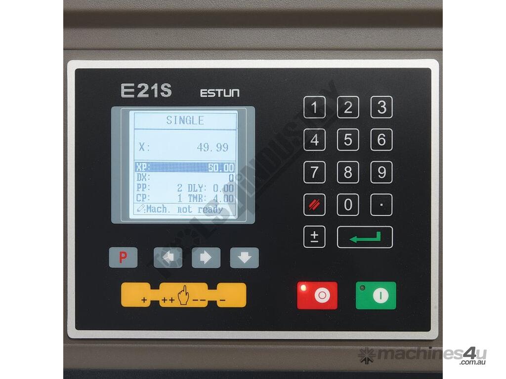 Estun E21S controller stores up to 40 unique programs with 25 automatic progressive cutting steps in each individual program, assuring production accuracy & repeatability every time