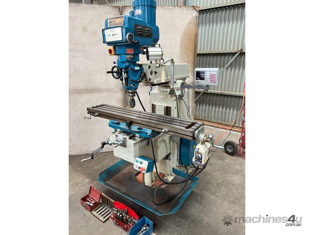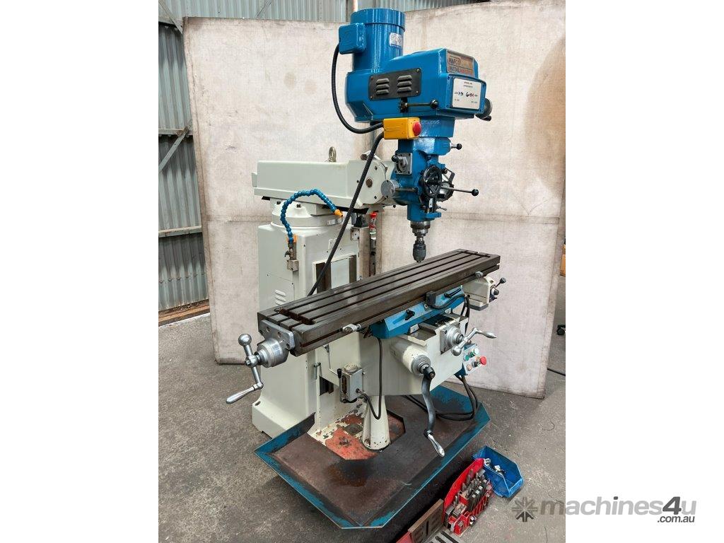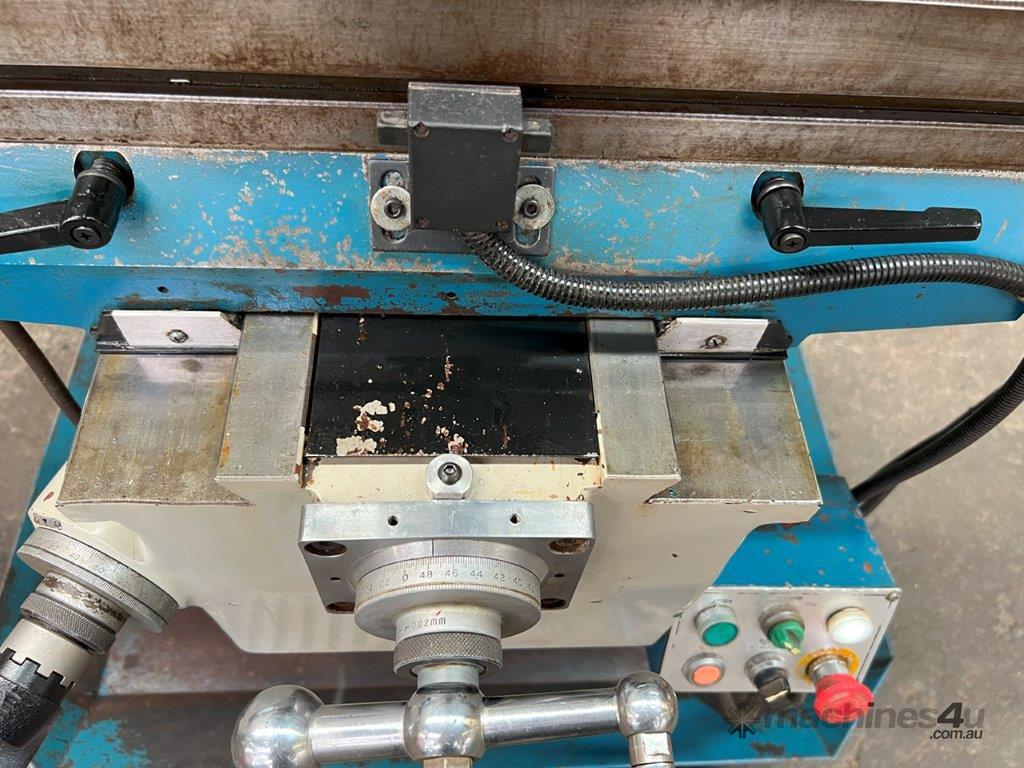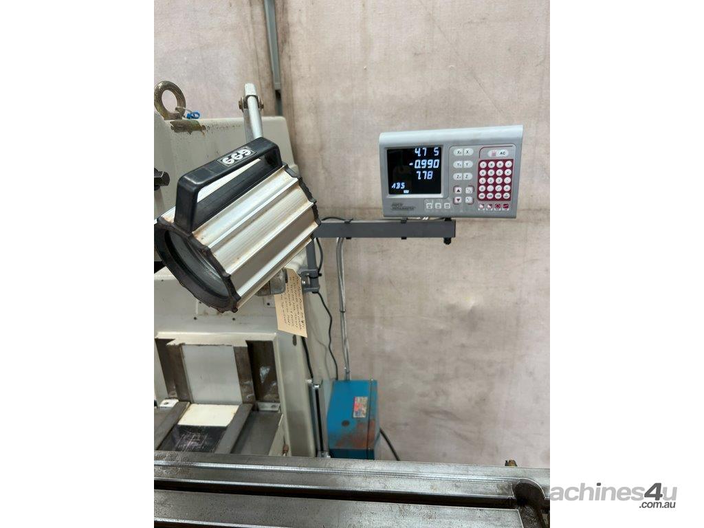 Feed and rapid to X axis, 3 axis DRO, 3hp 415 volt. Weight 1300kg