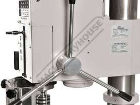 The GHD-22A Industrial Drilling Machine features a 3 Morse Taper spindle geared head rather than a pulley and belt drive system, making adjusting speed faster and simpler.