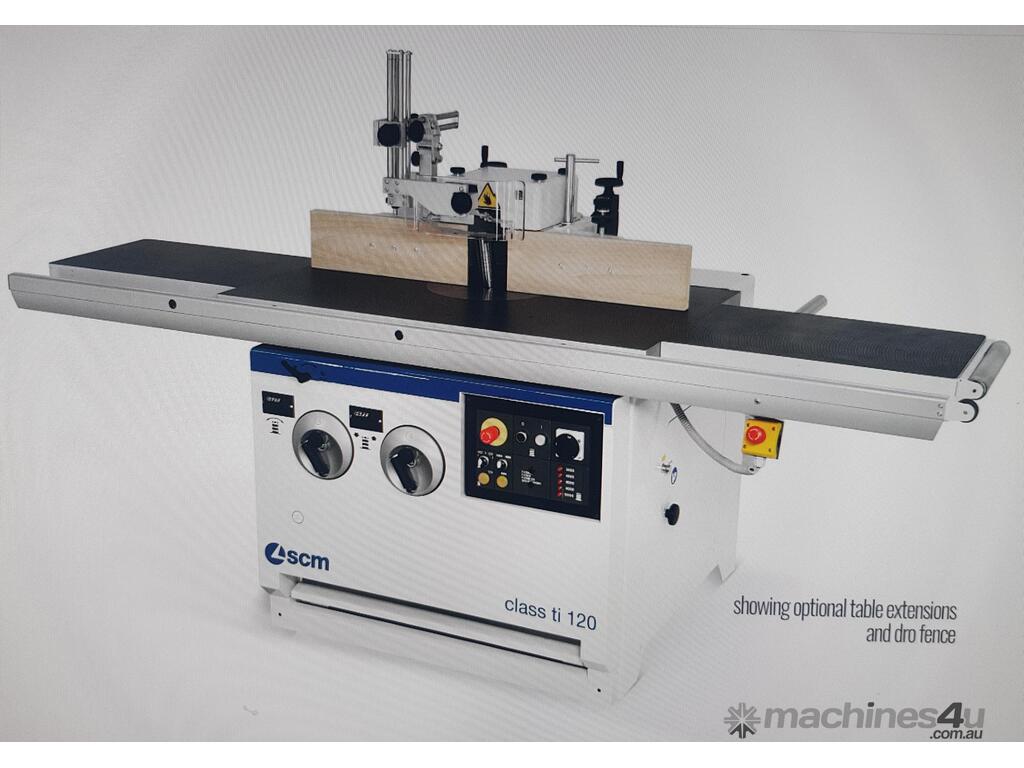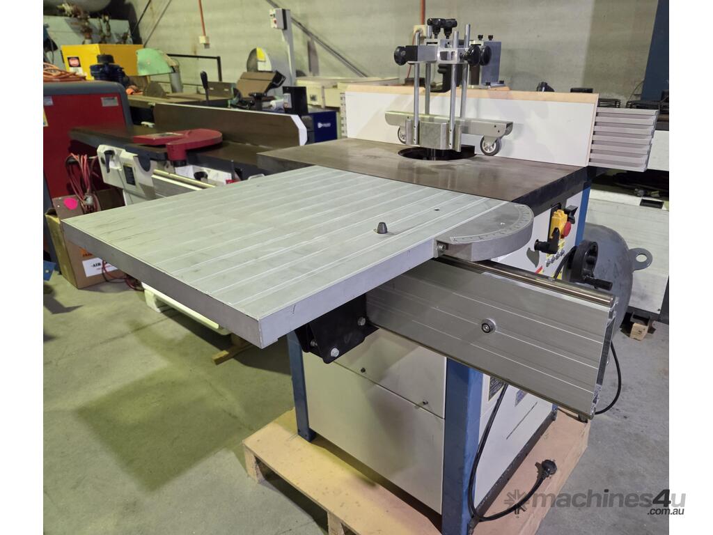 5. SCM T130NS L'INVINCIBILE SPINDLE MOULDER 5.5kw 7.5hp 415v SLIDING TABLE INCLUDING TENONING CLAMP, LATE MODEL, MADE IN ITALY, FOOT BRAKE / FOOT LOCK, 5-SPEEDS to 10,000rpm, FORWARD & REVERSE. HEAVY DUTY MODEL -THIS IS THE BIGGER MODEL THAN THE LIGHT DUTY T110, SET OF MANUALS / TOOLS. WELL ABOVE AVERAGE CONDITION, EX-GOVT. BETTER QUALITY THAN NEW SCM MODEL!! ADD THE HEAVY DUTY 4 x WHEEL POWER FEED MADE IN TAIWAN.