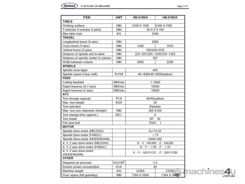 USED HARTFORD HB2150'S Vertical Machining Centre