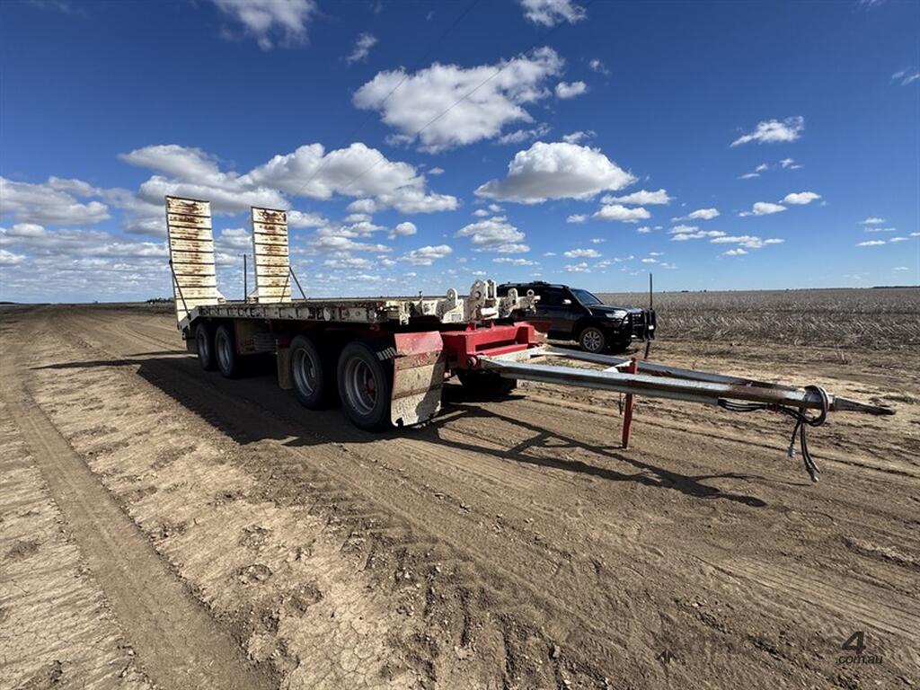 HAULMARK DOG TRAILER. Good tyres all around. Solid trailer. Spring suspension. 6.0 metres usable deck. Container pins. Suited to go behind the Acco tipper in the same auction. Currently registered, will be sold unregistered per the auction T&C's. Located Walgett, NSW