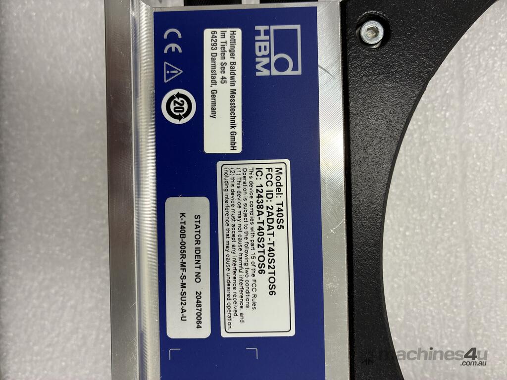 The unit appears unused and is supplied in its original opened box. HBM’s T40 series is renowned for its contactless telemetry system and robust signal integrity, ensuring long-term reliability and maintenance-free operation in high-speed testing environments.