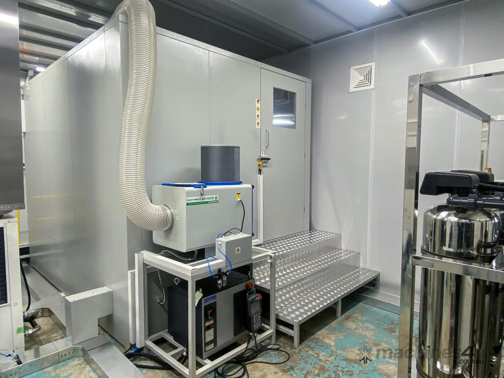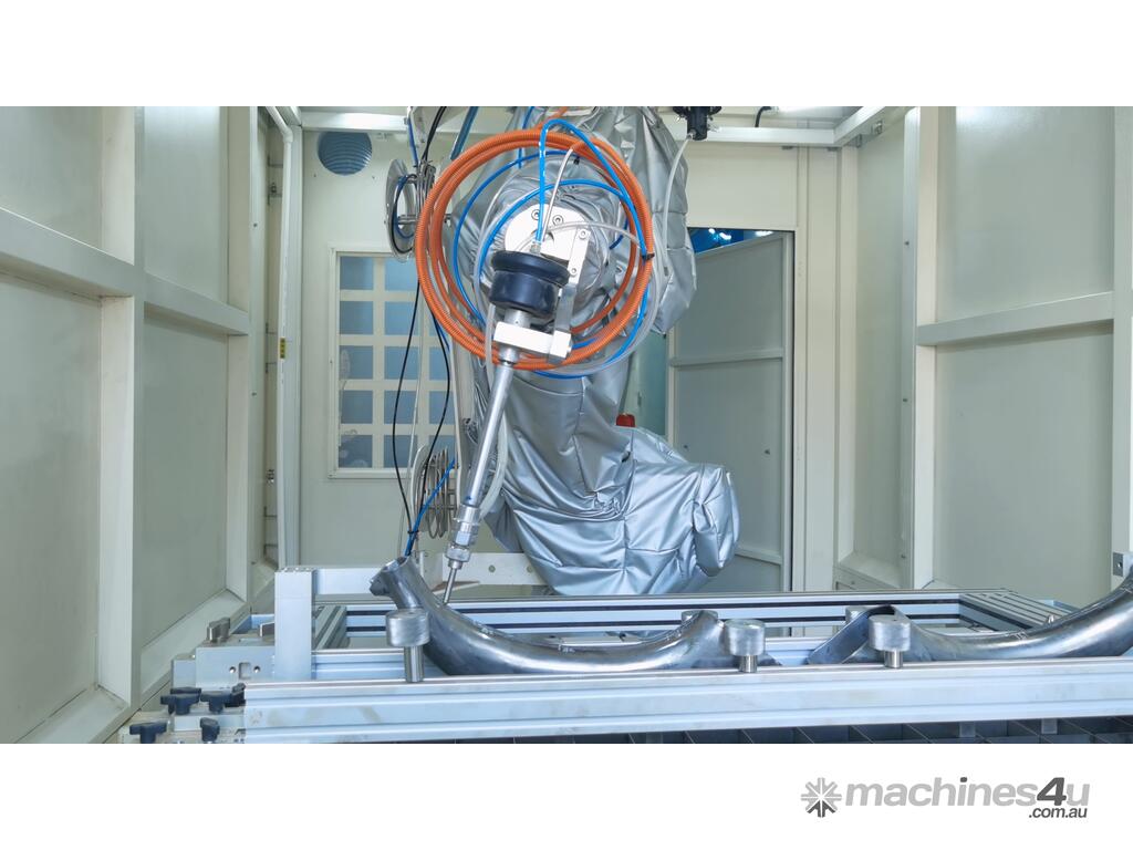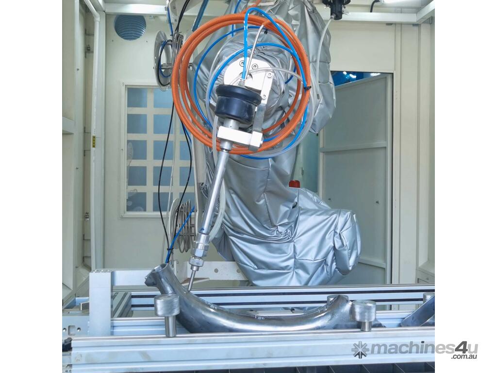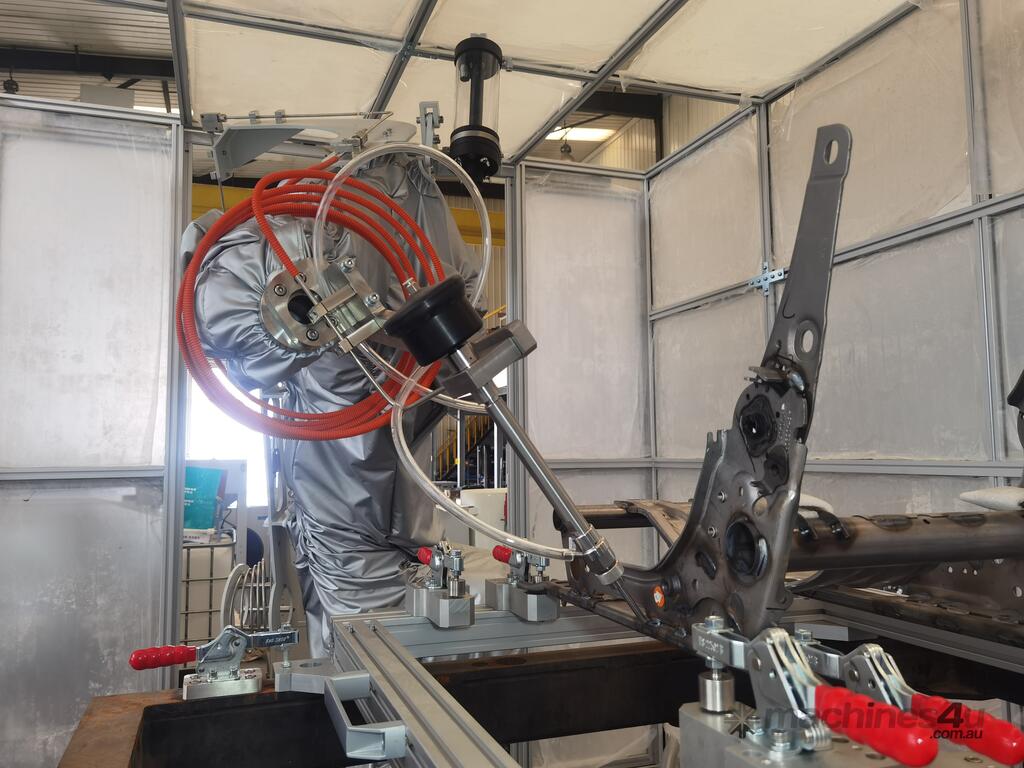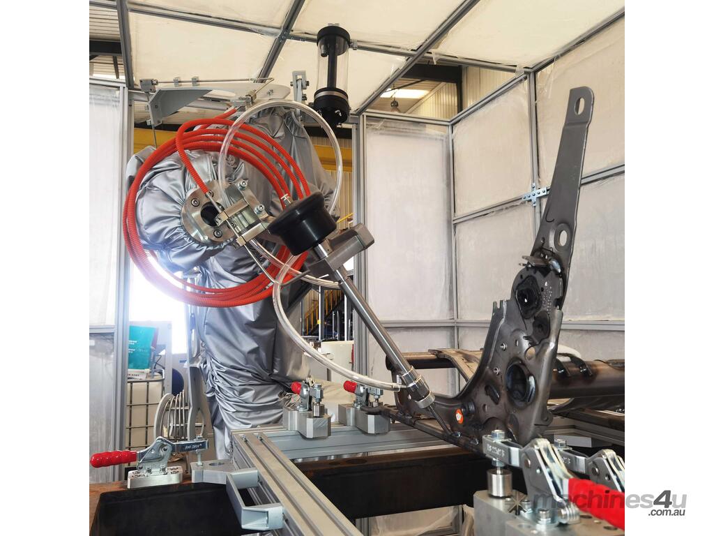 The nozzle, high pressure tube and abrasive hopper are all installed on the robot. The abrasive material is fed into the nozzle mixing chamber through a tube. At the same time, the booster pump delivers high-pressure water through the coil.