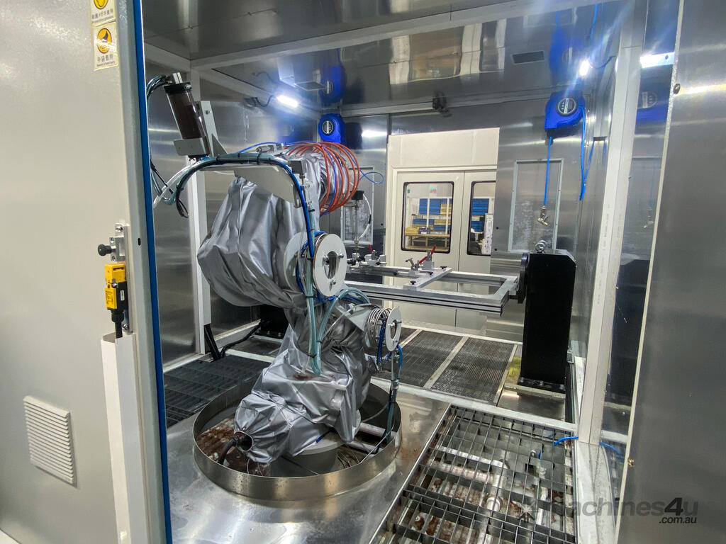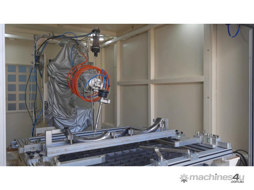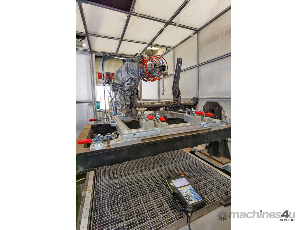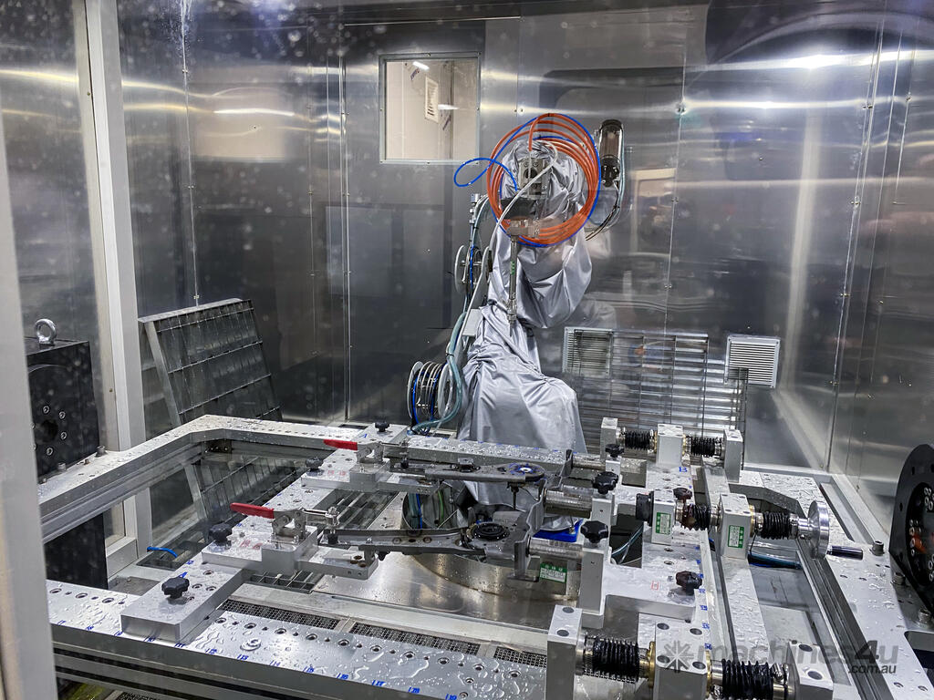 Through intelligent fixture and overall system design, the robot with abrasive water jet cutting head can reach the top, bottom and middle of various part features. It can be installed on the wall, even upside down, or installed on the seventh-axis linear guide, which can carry it in a huge working range. In order to increase production, multiple waterjet cutting robots can work side by side, and can process multiple parts or the same part at the same time. With the correct pump and control configuration, the system can feed multiple robots working at the same time.