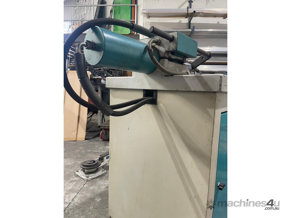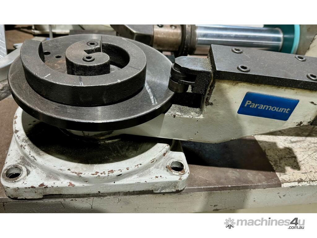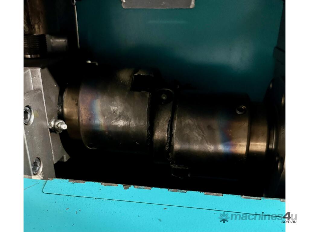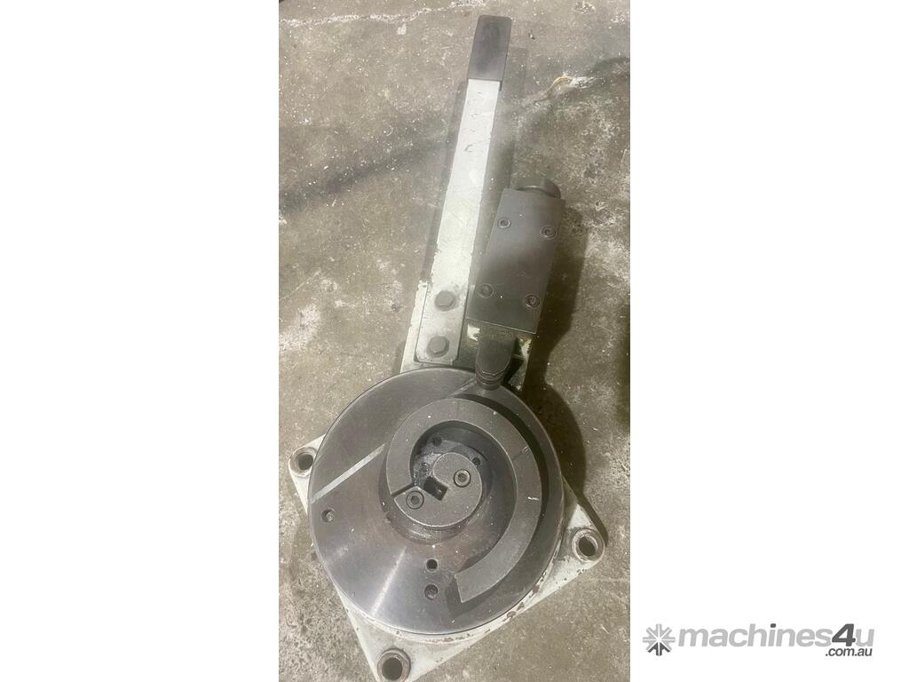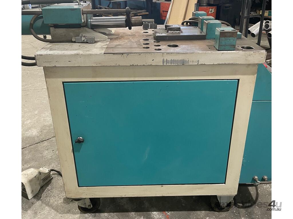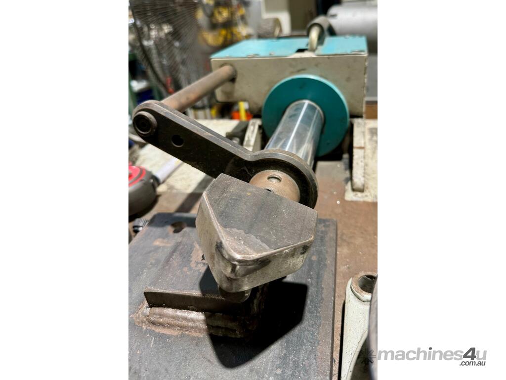 Endforging unit with two driven shafts, which can make both narrow and wide forges, as well as spear points. The material must be heated before operation.