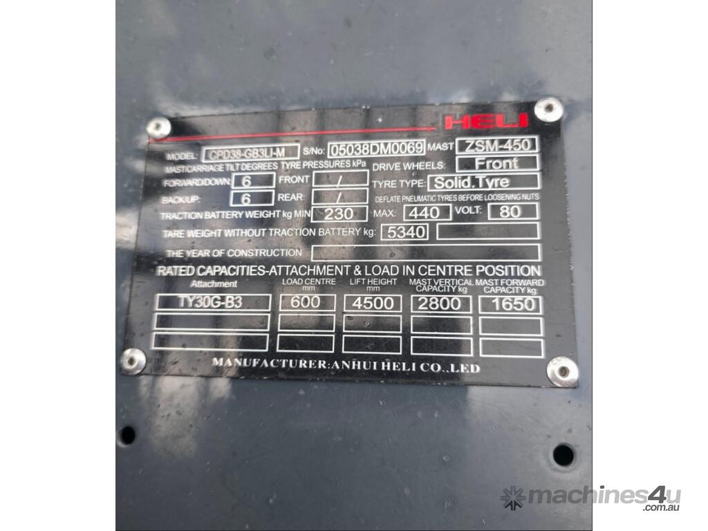 Up for sale is a near-new HELI G2 Series Lithium-ion Forklift (CPD38-GB3LI-M). If you are looking to upgrade your warehouse efficiency with zero emissions and zero battery maintenance, this 80V powerhouse is the perfect solution. It combines the heavy-duty strength of a diesel truck with the quiet, cost-saving benefits of electric.