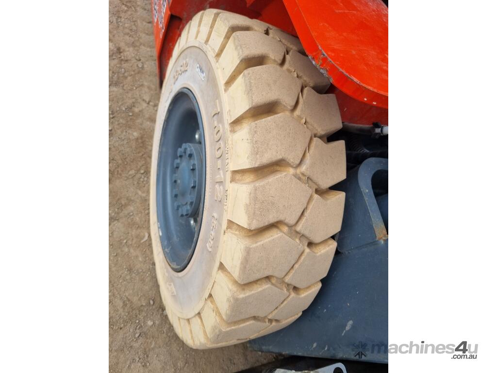 It has non-marking tyres, a 2.5-ton lifting capacity and a 6 meter reach.