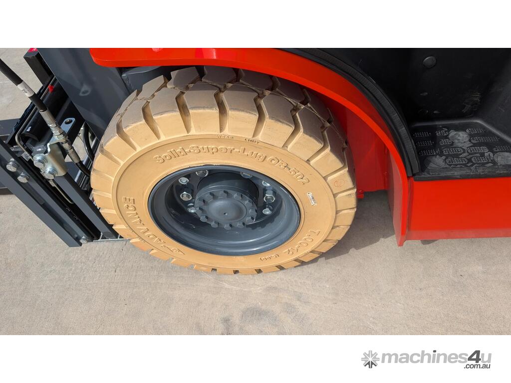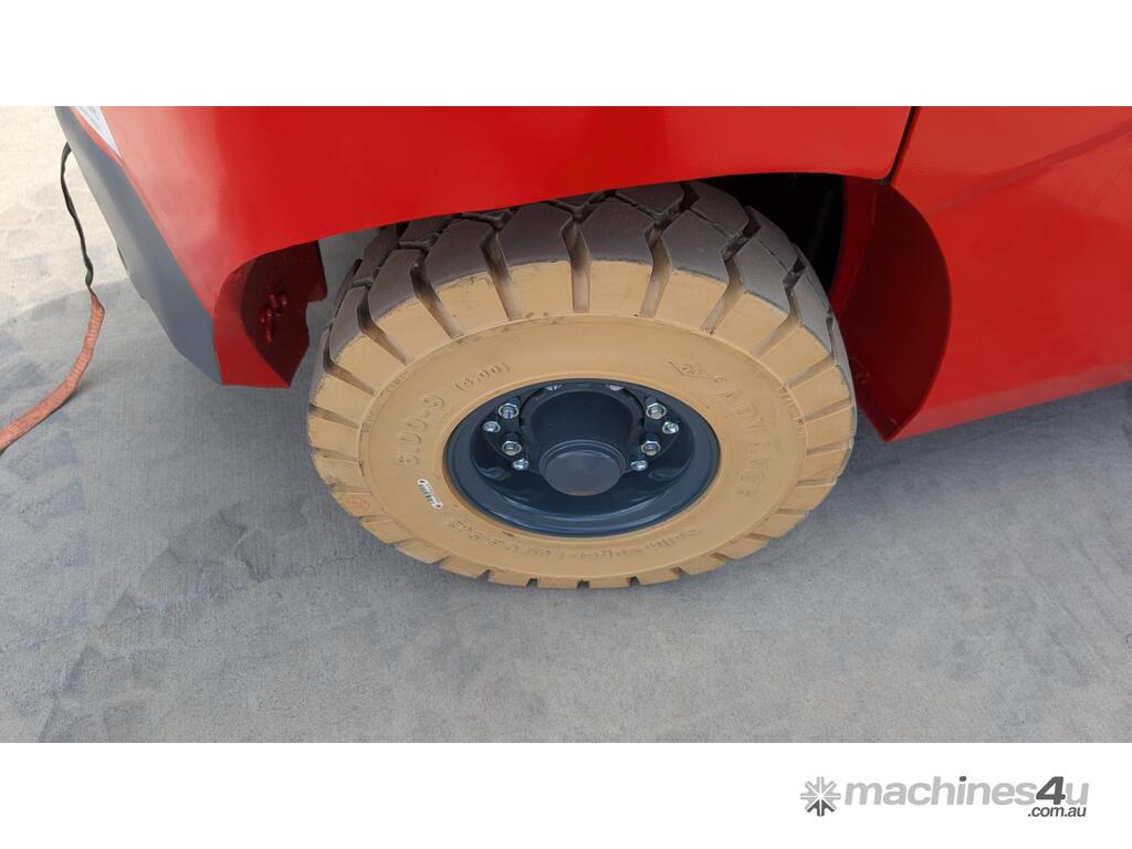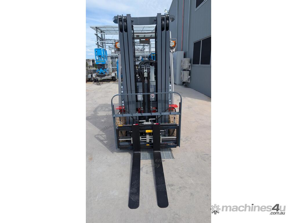It has non-marking tyres, a 2.5-ton lifting capacity and a 4 meter reach. Perfect for in and out of containers or any other spaces you might need to get this forklift into.