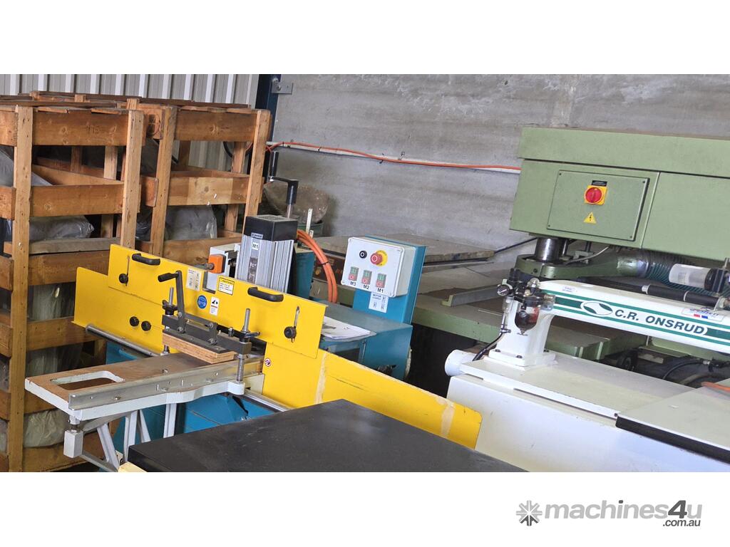 11. SCM TEN 220 CLASS AUTOMATIC TENONER Year 2009, UNIQUE QUICK-RELEASE TOOLING SET-UP, SEPARATE CUT-OFF SAW, POWER SLIDING TABLE INCLUDING AUTOMATIC AIR CLAMPING, OVERHEAD CONTROLS, MADE IN ITALY, VERY HEAVY DUTY, FENCE DISMANTLED FOR TRANSPORT IN PHOTOS