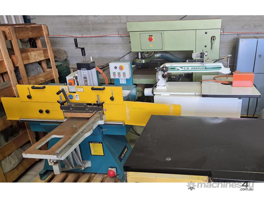 5. UNION-ONE SINGLE-END TENONER 3 X SPINDLES/CUTTERS, SLIDING TABLE, Model SETM-3HD-3, MADE IN TAIWAN Year 2018 8.4kw 415v SEMI-AUTOMATIC OPERATION, TOP & BOTTOM VERTICAL SPINDLES + 3RD VERTICAL SPINDLE, SUIT WINDOWS & DOOR MANUFACTURE, INCLUDING 3 x CUTTERHEADS, HEAVY DUTY, TOP QUALITY & TOP CONDITION.