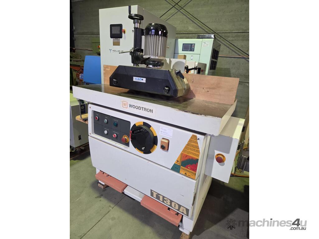 4. WOODTRON T130A SPINDLE MOULDER 7.5kw 10hp 415v, Year 11/2022 INCLUDING 4 x WHEEL POWER FEED UNIT, CURRENT MODEL, MADE IN TAIWAN, FOOT BRAKE / FOOT LOCK, 12 x SPEEDS to 10,000rpm, FORWARD & REVERSE, VERY HEAVY DUTY, SET OF MANUALS / TOOLS. CUTTERBLOCK INCLUDED. ABOVE AVERAGE CONDITION. 1/2 REPLACEMENT COST