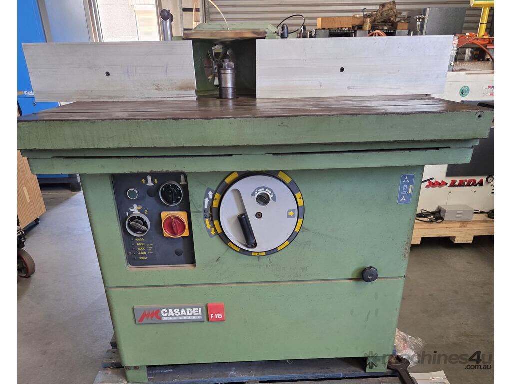 2. CASADEI F115C SLIDING TABLE SPINDLE MOULDER 4.6kw 6hp 415v, Year 1992 MADE IN ITALY, BRAKE, 5-SPEEDS to 10,000rpm, FORWARD & REVERSE. HEAVY DUTY MODEL, LARGE 1.1m x 1m TABLE. PROVISION FOR POWER FEED