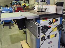 6. SCM T130NS L'INVINCIBILE SPINDLE MOULDER 5.5kw 7.5hp 415v SLIDING TABLE INCLUDING TENONING CLAMP, LATE MODEL, MADE IN ITALY, FOOT BRAKE / FOOT LOCK, 5-SPEEDS to 10,000rpm, FORWARD & REVERSE. HEAVY DUTY MODEL -THIS IS THE BIGGER MODEL THAN THE LIGHT DUTY T110, SET OF MANUALS / TOOLS. WELL ABOVE AVERAGE CONDITION, EX-GOVT. BETTER QUALITY THAN NEW SCM MODEL!! ADD THE HEAVY DUTY 4 x WHEEL POWER FEED MADE IN TAIWAN.