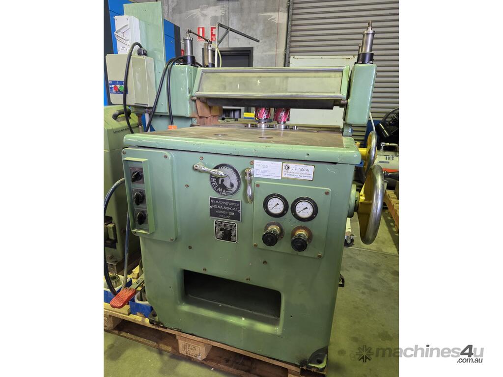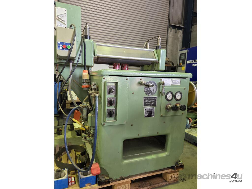 HELMA THROUGH-FEED TWIN SPINDLE WOOD SHAPER Including SPIRAL CUTTERS Very Heavy Duty Made in HOLLAND