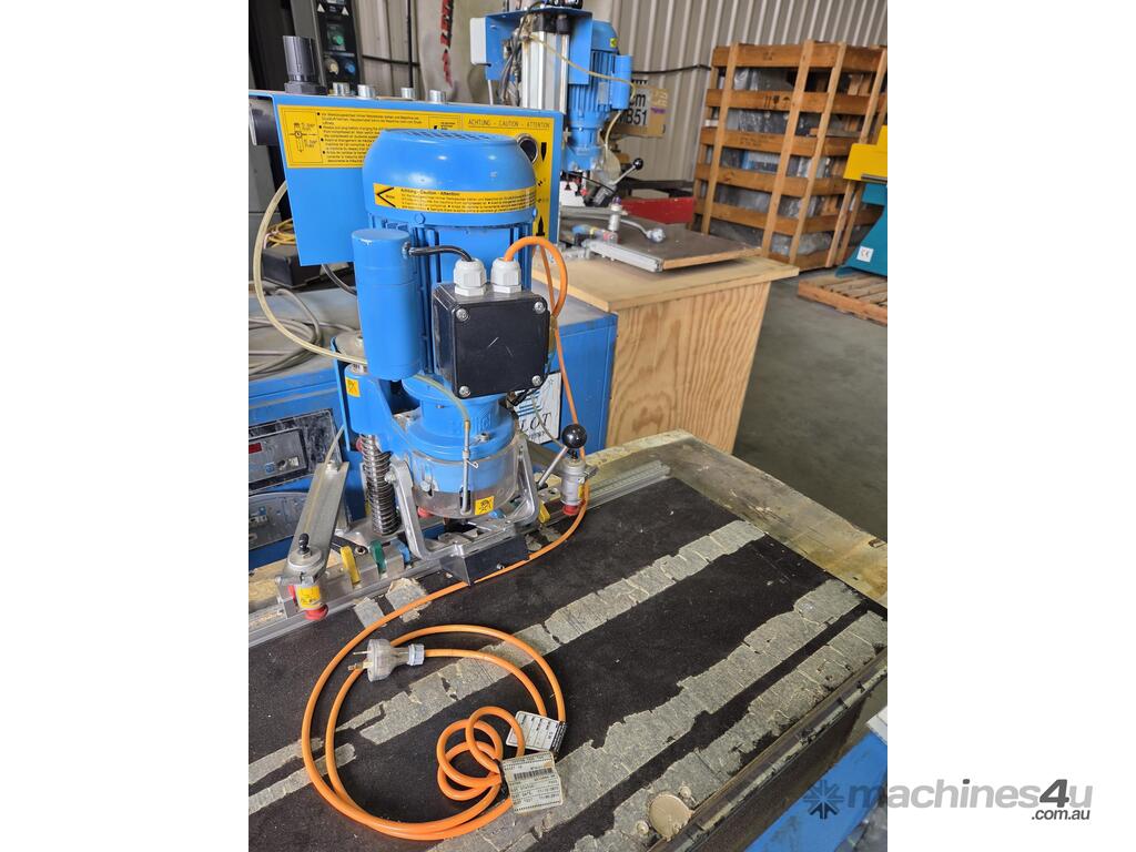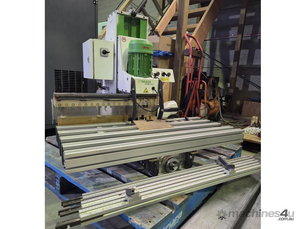 3. GRASS FLEXI-PRESS MULTI-BORER Horizontal and Vertical Boring Machine Year 2008 Made in Austria, Pneumatic Clamping, Manual Flipover Stops, Extension Fences, Hinge Insertion.