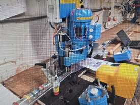 7. XCALIBUR HORIZONTAL DOWEL BORER (IDENTICAL TO LEDA/HOLYTEK BM-301) Model 930, SINGLE PHASE 2hp 240v, Year 2006, ADJUSTABLE DRILLING HEAD. Pneumatic Operation & Clamping, Foot Pedal Operation, Foot Safety Switch. Max Stroke - 100mm. Adjustable Spindles from 18mm ~ 74mm. Max Thickness- 216mm. Solid Cast Machine, Made in Taiwan. Ex-TAFE, Virtually As New Condition, Current Series. BARGAIN!