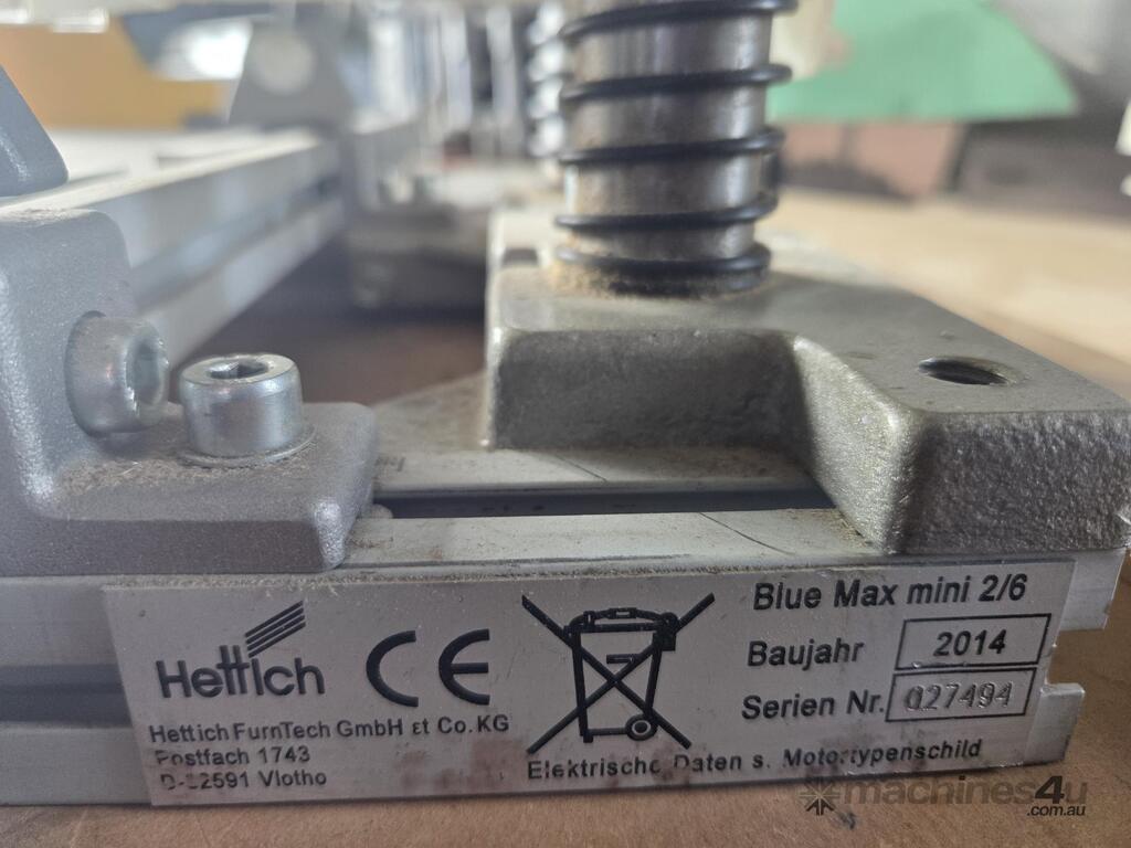1. HETTICH BlueMax Mini Modular MULTI-BORER (Vertical/Horizontal) HINGE BORER/INSERTER, 415v MADE IN GERMANY Year 2022 CURRENT SERIES, DETACHABLE MULTI-HEAD DRILL System 32, MOUNTED ON FACTORY BENCH, INCLUDING MAXI-STOP EXTENSION FENCES, COLOUR-CODED FLIPOVER FENCE STOPS, HANDS-FREE OPERATION, ALL ACCESSORIES, AS NEW CONDITION. REQUEST EXTRA PHOTOS.