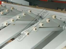 Pneumatic operated material sheet supports mounted to rear of machine.