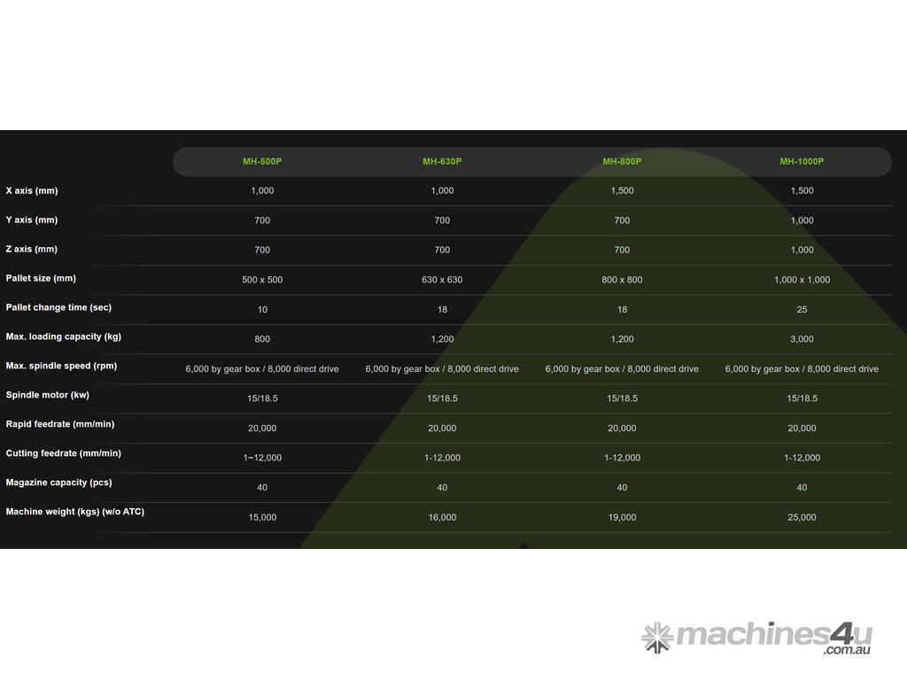 Superb tool change time in 1 second tool to tool and 3 second chip to chip on all MH-PLUS horizontal machining centers (HMC)models.