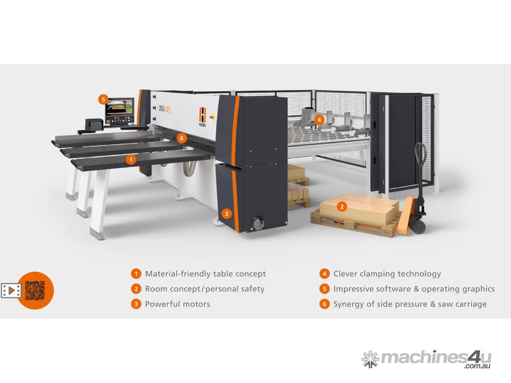 The gantry design saw carriage is guided on precise and hardened linear guides.