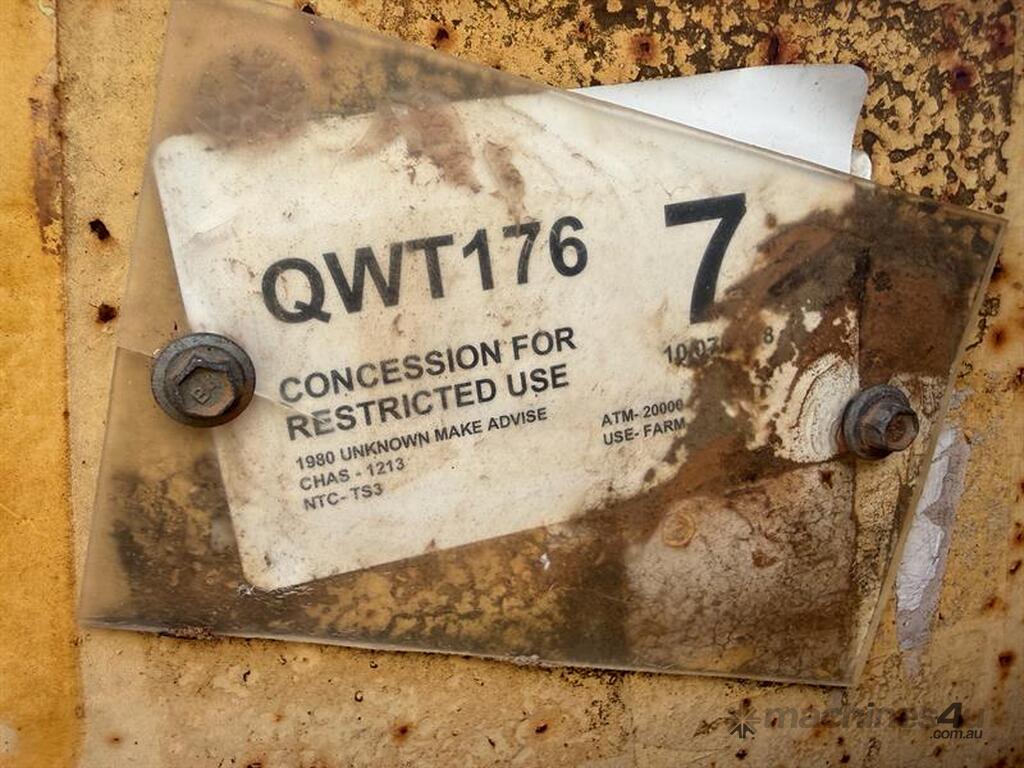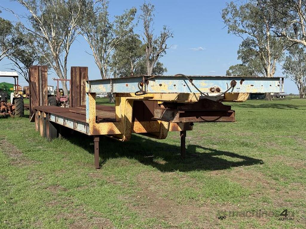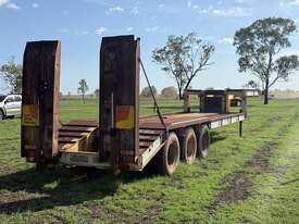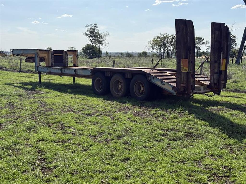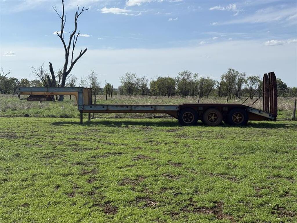 HOMEMADE LOW LOADER TRAILER, NO VIN VISIBLE, NO REGISTRATION, NO COI. LOCATION: 3 KM NORTH OF CAPELLA, QLD 4723. INSPECTIONS & COLLECTIONS: BY APPOINTMENT ONLY. ENQUIRIES: RYAN OGDEN BROWN ON OR RYANEMERALDAUCTIONCENTRE