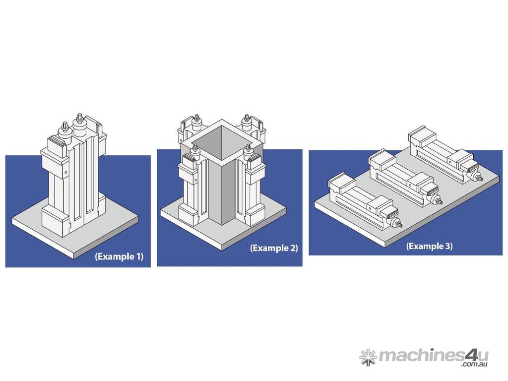 3-The Special ANGLE-LOCK SYSTEM with compact design and high-grade iron of over FCD 60 grade for high rigidity automatically pulls the workpiece down to the accurate position of within 0.005mm under 4500kg of pressure. This vice is most suitable for precision mould making on Machining Centres.