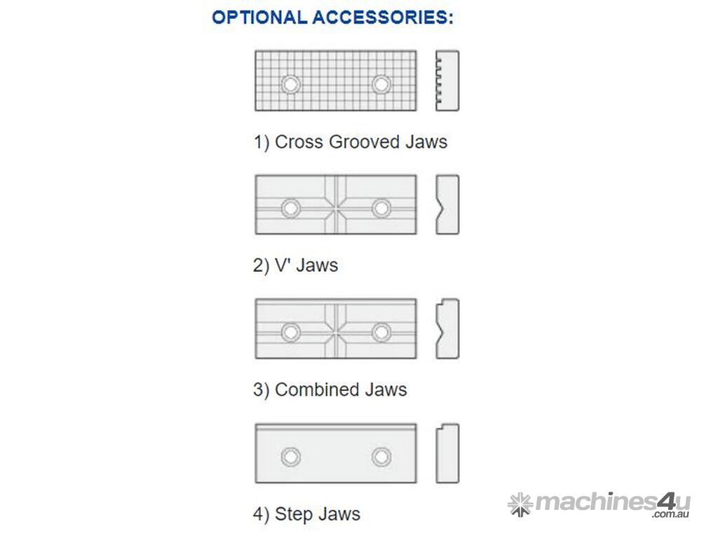 1-Vise Fixed Jaw is made of high-quality steel and HARDENED to HRC 55º. Vice body is made of Ductile Iron above FCD 60 grade for high precision and durability. With a force of 4500kg, the shape will deflect less than 0.005mm.