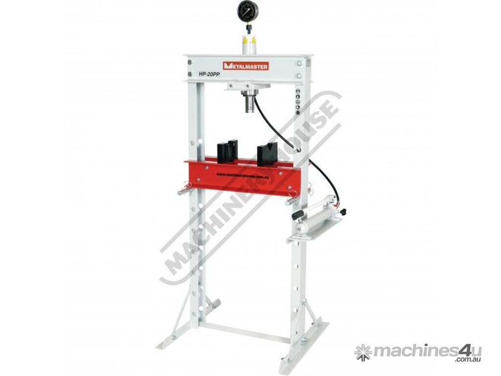 METALMASTER HP-20PP Workshop Hydraulic Press - 20 Tonne High Strength Steel Construction Includes Adjustable Sliding Cylinder Ram, Pressure Gauge & Bending Vee Plates