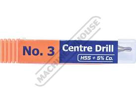 ALCOCK HSS Centre Drill - No.3 M35 Grade HSS with 5% Cobalt Point Angle - 60°