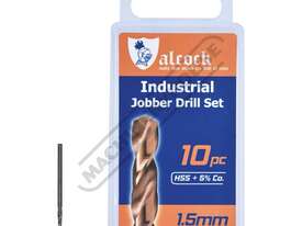 ALCOCK HSS Jobber Drill Pack - 10 Piece Ø1.5mm M35 Grade HSS with 5% Cobalt 135º Precision Ground Flute & Split Point