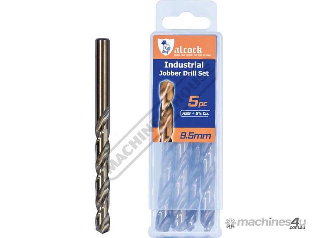 ALCOCK HSS Jobber Drill Pack - 5 Piece Ø9.5mm M35 Grade HSS with 5% Cobalt 135º Precision Ground Flute & Split Point