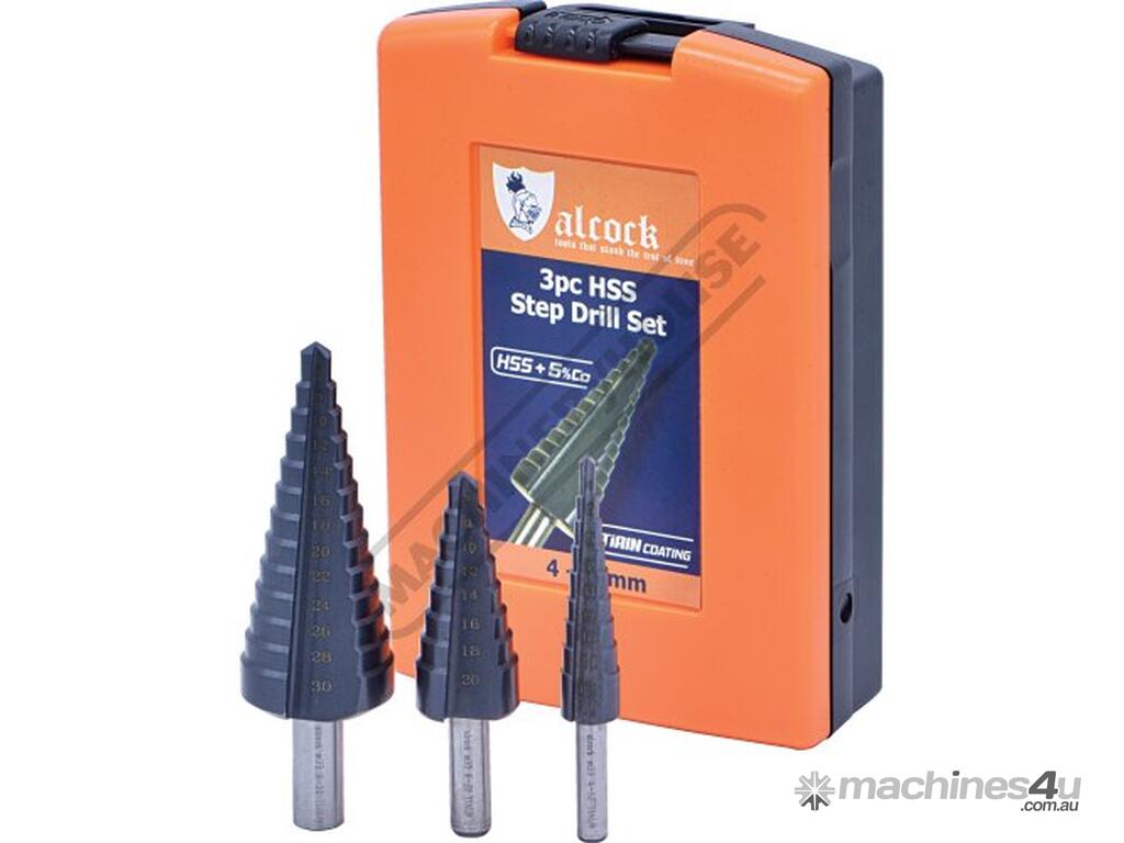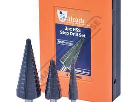 ALCOCK HSS Sheet Metal Step Drill Set - 3 Piece Ø4 - Ø30mm