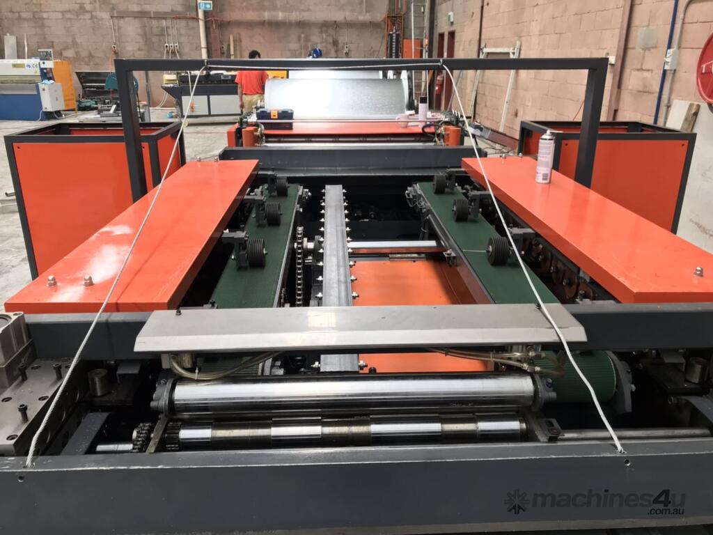 HVAC Duct Production Line. Model: SM-Auto Pro CAL-6-1.2-1600- Compact Series. 9 Function Heavy Duty Twin Decoiler, Straightener, Beading, Notching, Punching, Shearing, Pittsburgh, Duplex TDF & Folding