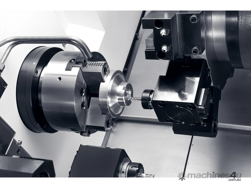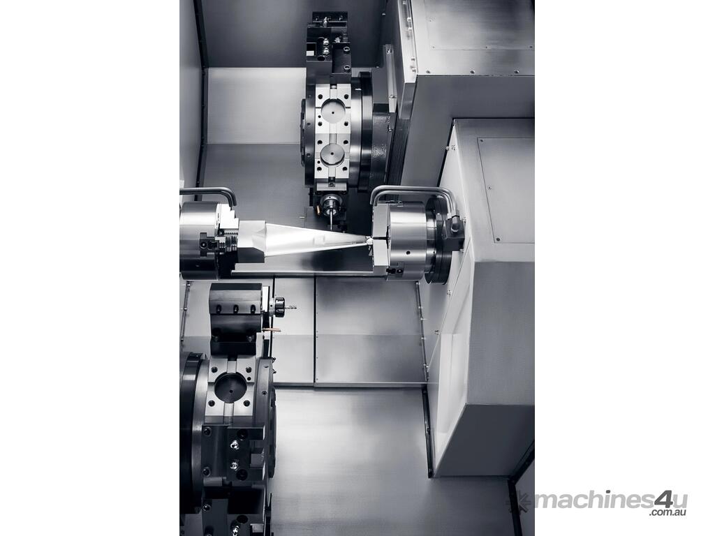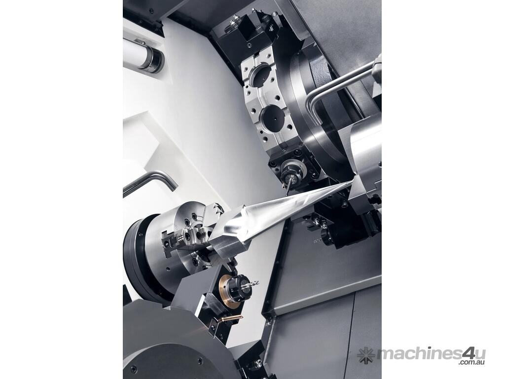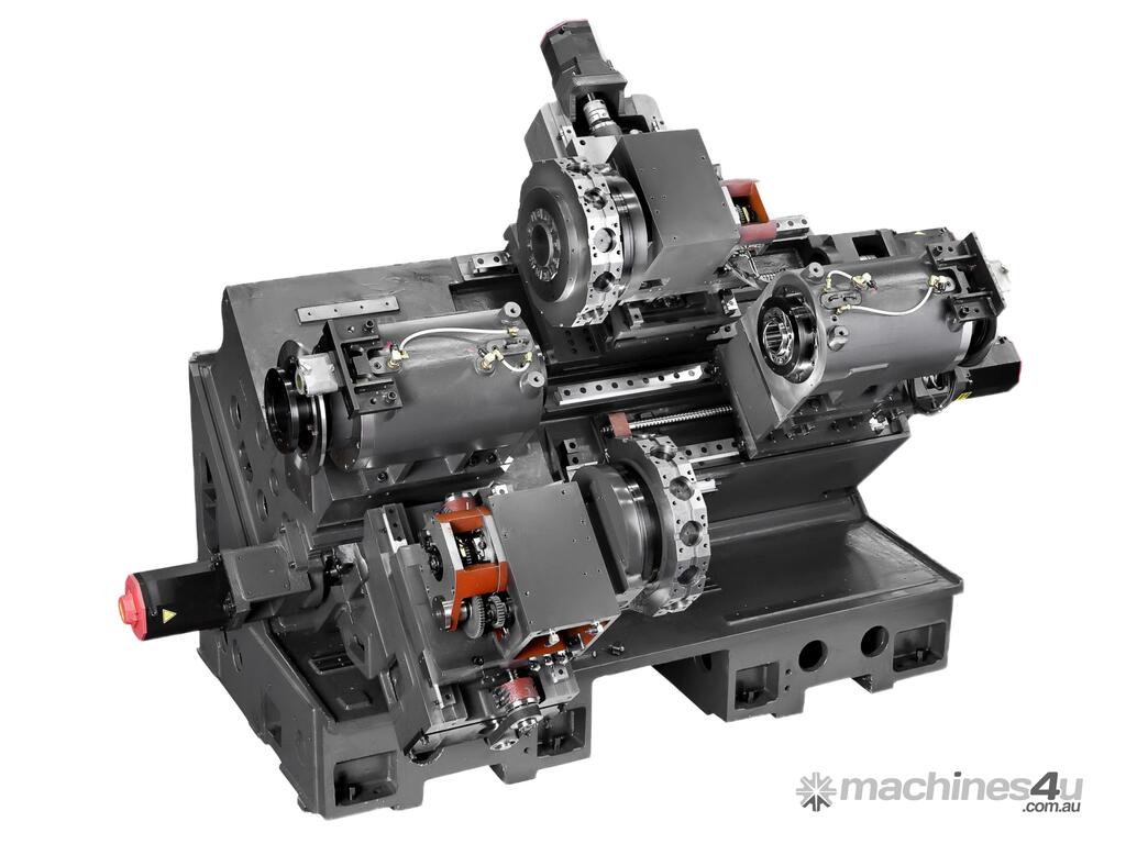 The T2 is a dynamic twin turret lathe designed for high-volume production of complex workpieces. With 12 tool stations per turret, rapid indexing times, and high drive power, it offers maximum efficiency and precision. The machine features a robust, FEM-optimized bed, actively cooled drives, and extensive in-house manufacturing, making it ideal for multi-shift operations. Ergonomic design and numerous optional features allow customization to meet diverse performance and precision requirements.