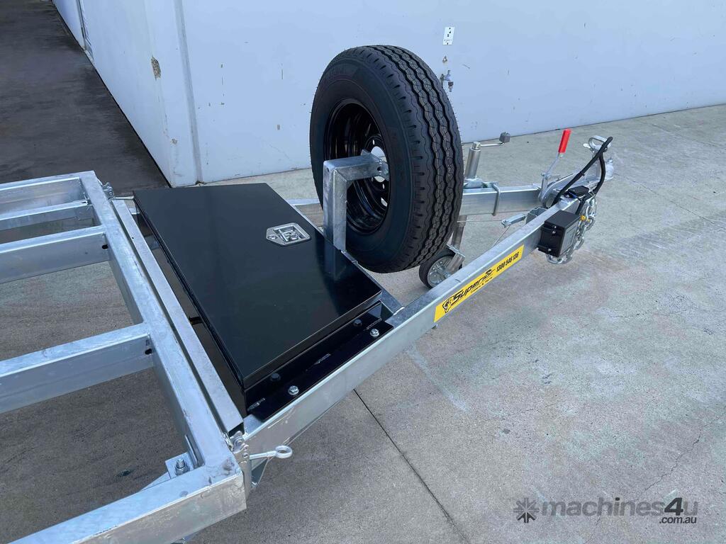 The Superior Plant Trailers have a very high build specification and are designed to provide an exceptionally long service life. Details such as tripple folded full length mudgaurds and Heavy Duty Greasable Rocker Roller Suspension make this the trailer of choice for builders, contractors and businesses looking to move all types of material.
