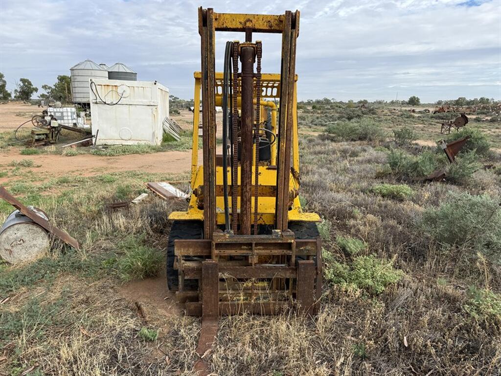 Hyster H40H Diesel 2 tonne Forklift, S/N D003S01737U. Vendor states forklift was running but currently requires a starter motor. Fitted with forks. Loading available with prior notice. Located Wilcannia, NSW.