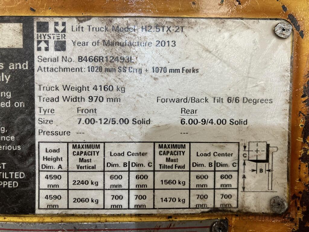 HYSTER H2.5TX-2T LPG FORKLIFT – 2013 MODEL – LOW 5,022 HOURS – SIDESHIFT – 4.6M CONTAINER MAST