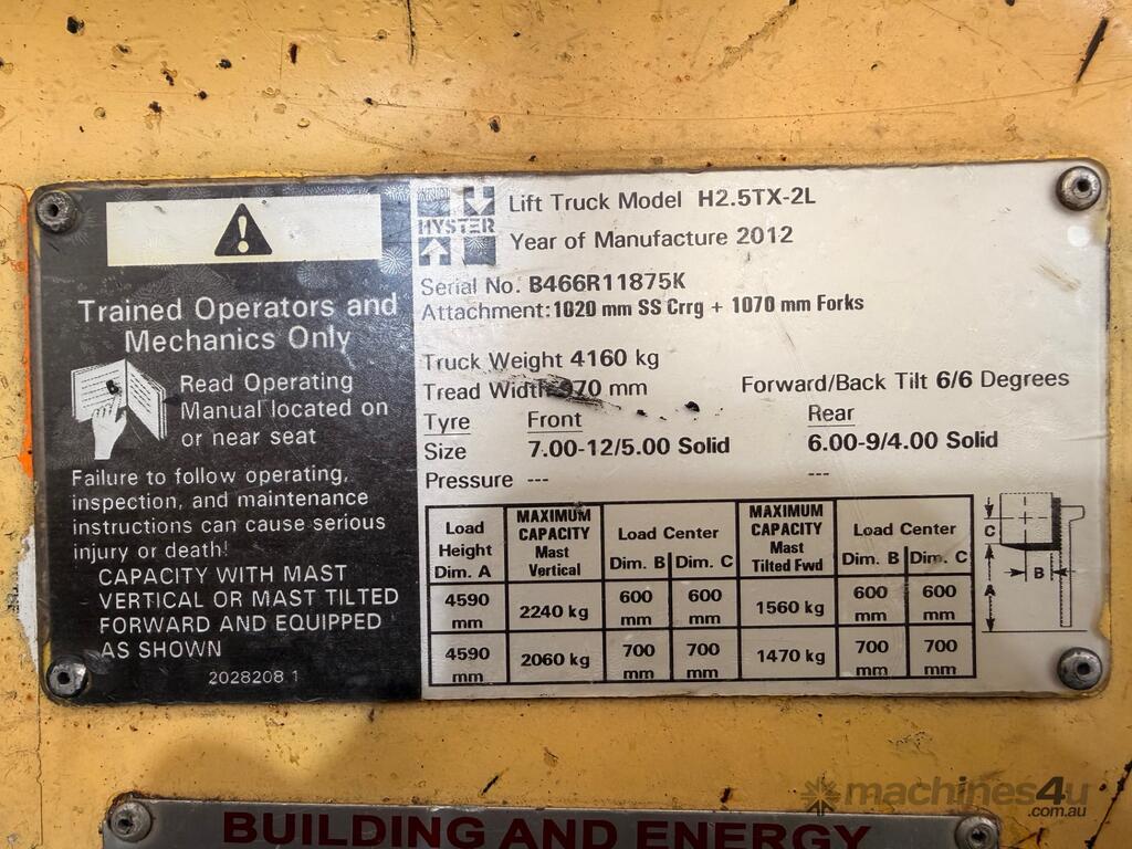 Rated Capacity: 2,240kg 600mm Load Centre