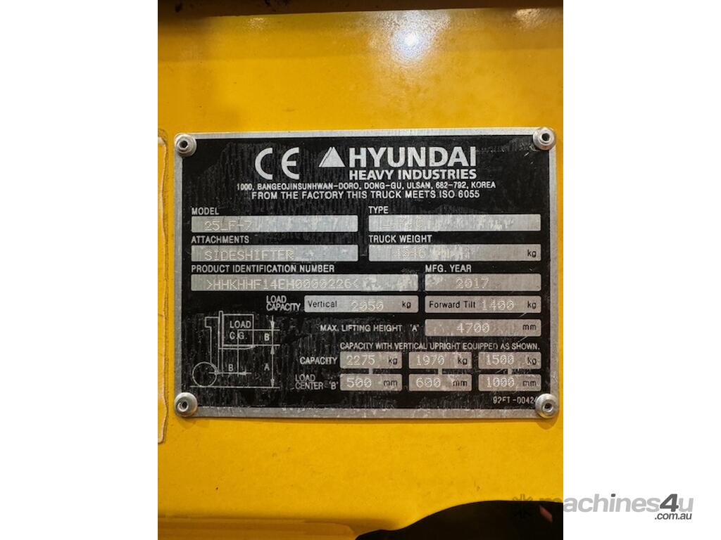 HYUNDAI 2.5T LPG FORKLIFT – SIDESHIFT – 4.7M LIFT – 2017